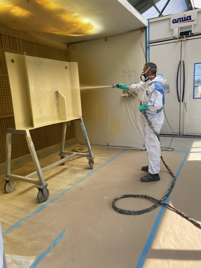 - b) Application de peinture au pistolet airless