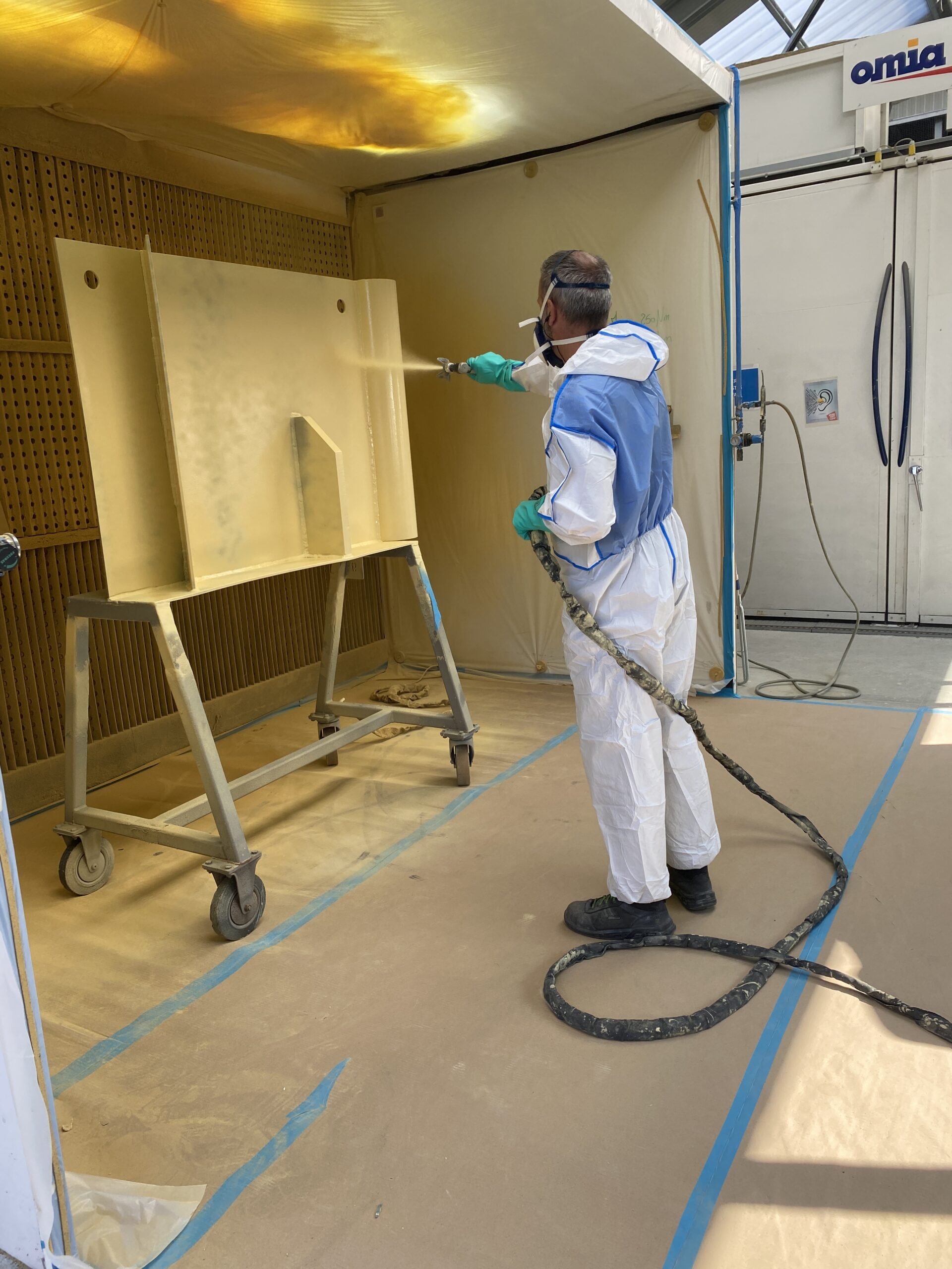 - b) Application de peinture au pistolet